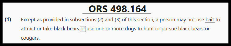 As of 2026 it is legal to bait mountain lions in Oregon